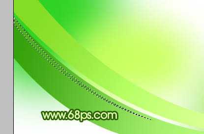 9、再背景图层上面新建一个图层,用钢笔勾出图13所示的选区,填充颜色:#6AC242,到这一步背景部分的制作基本完成,效果如图14,后面再来制作彩带。