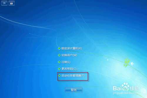 键盘输入组合命令键“Ctrl+Alt+Delete”,等待弹出蓝色界面,选择启动任务管理器,如图2;