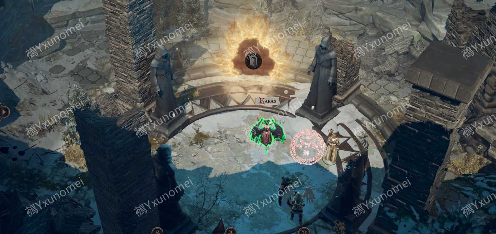 点击中间的磨盘,成了可以见boss了。(飞升相关:只有在这里进入传送门后的阿雷什卡高才会被午夜弩箭射掉水晶,进门之前的和谜语之核任务最后的都是分身)